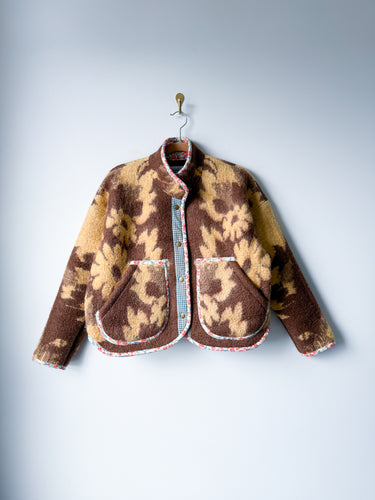 One-of-a-Kind: Brown and Tan Floral Ukrainian Blanket Flora Jacket (S)