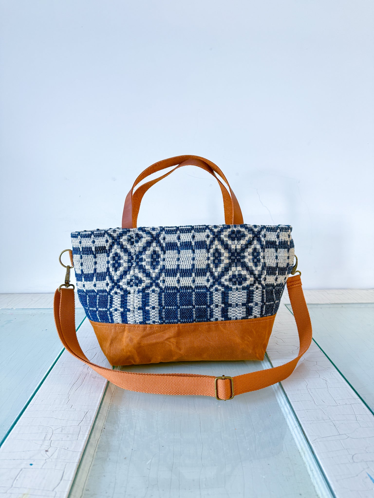 As this is an antique coverlet that has lived a full life before becoming a bag, it is possible it shows its history in the form of minor discolorations, and/or wear, these are not viewed as flaws but as characteristics of it's past - sold AS IS. Please see photos as returns are not accepted.