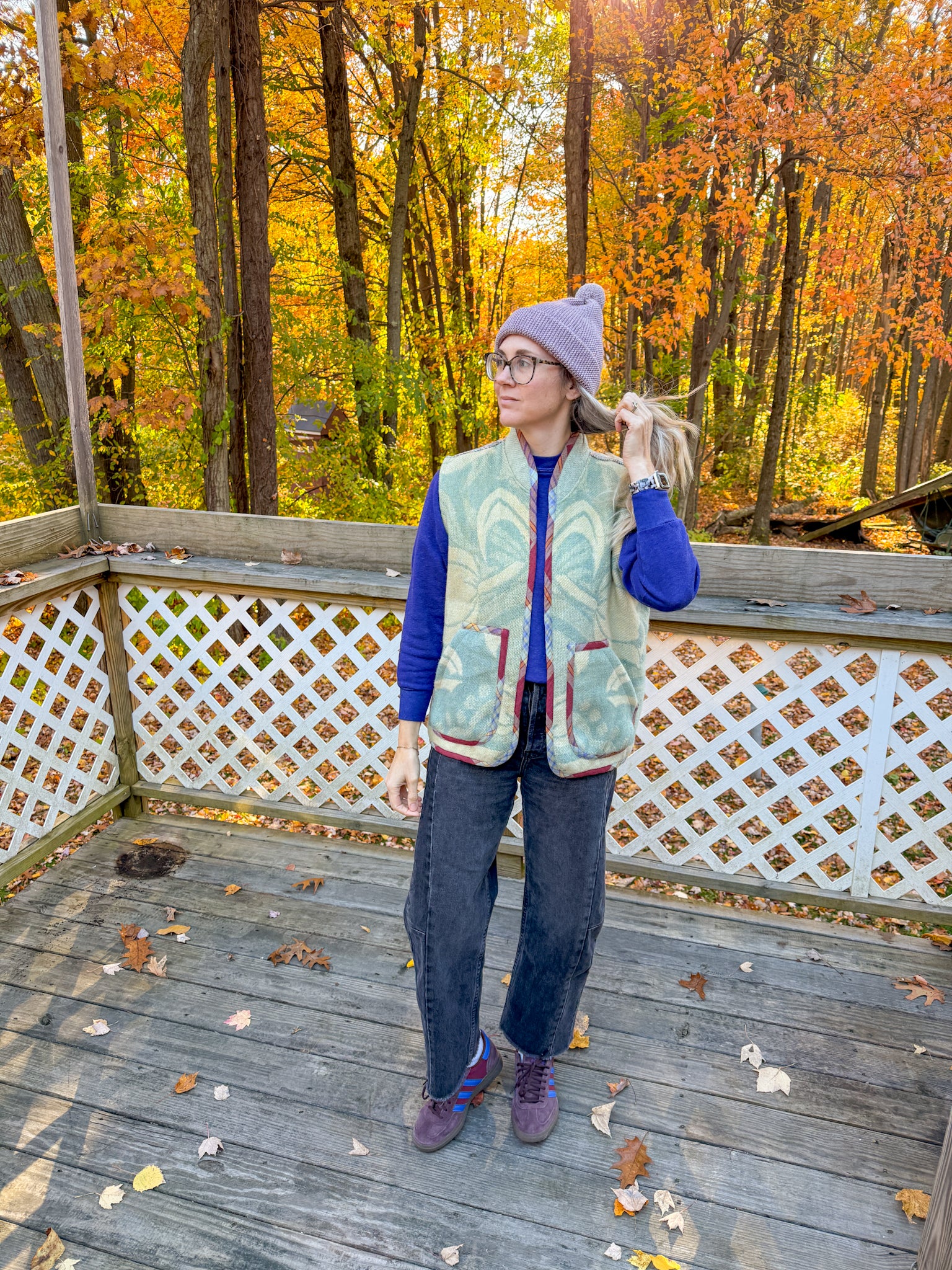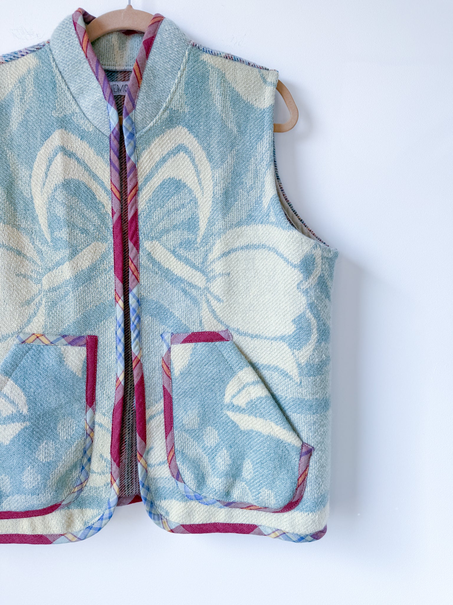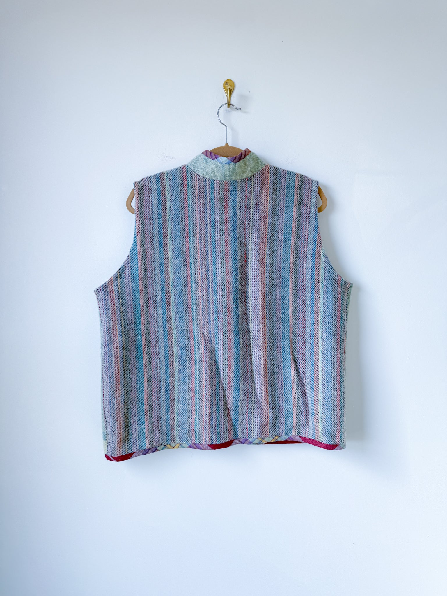 This vest features two vintage 100% wool blankets - Orr Health and LLBean, respectively, with a plaid cotton binding (made from sample fabric shared by our friends at Toad&Co.), complete with rounded handwarmer style pockets.