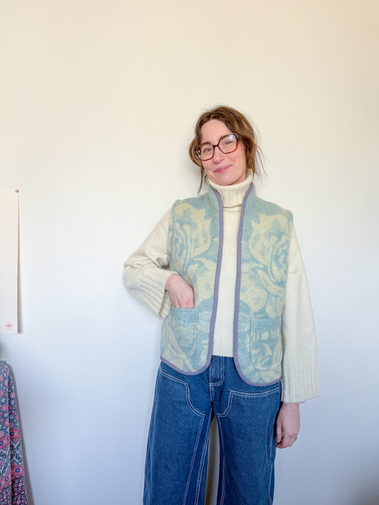 This vest features a vintage blanket sourced from a woman-owned business in Ukraine, with bound edges and fully-lined patch front pockets