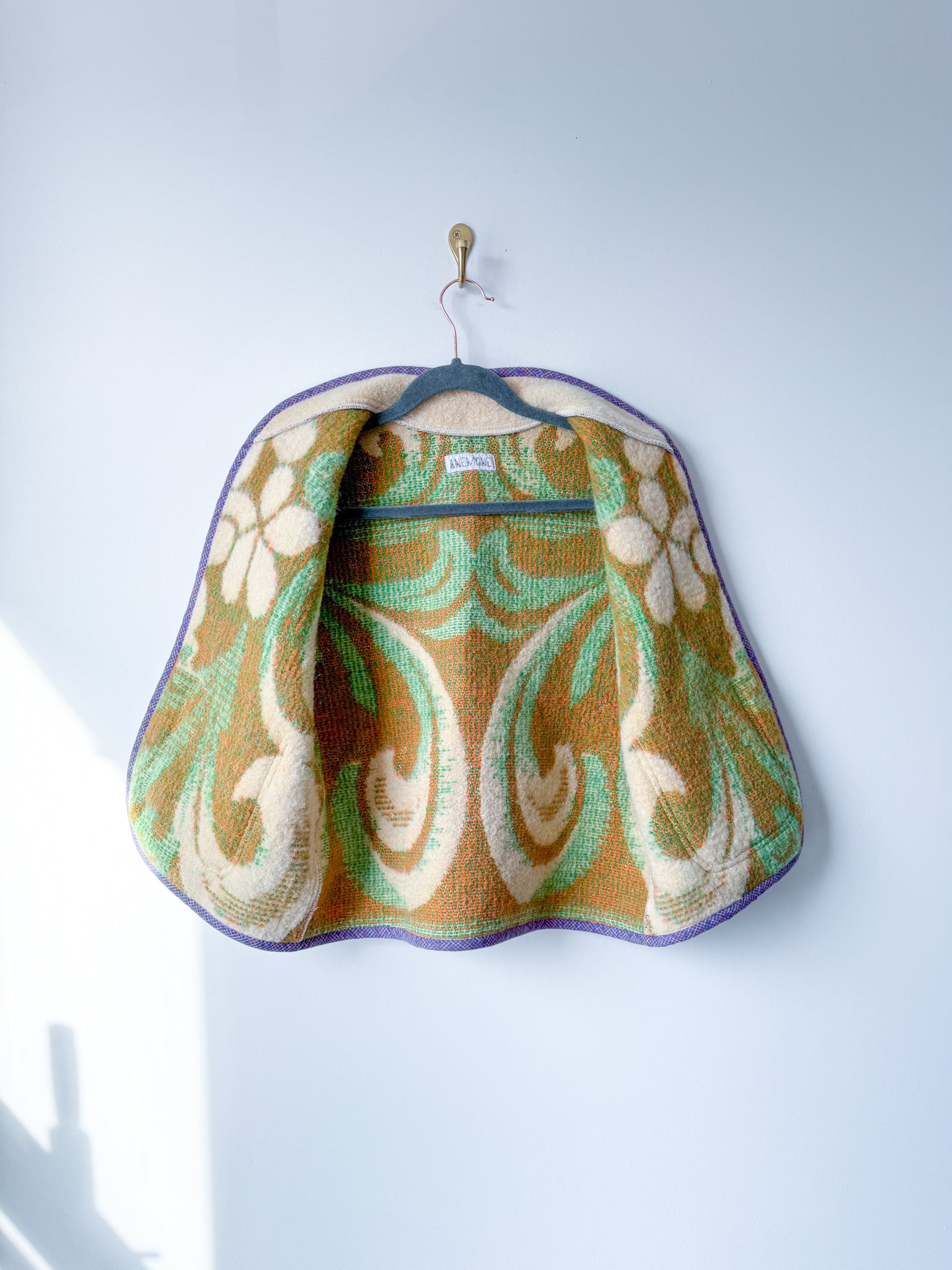 This vest features a vintage wool blanket sourced from a woman-owned business in Ukraine, with bound edges and fully-lined patch front pockets